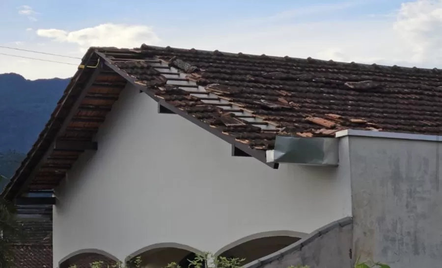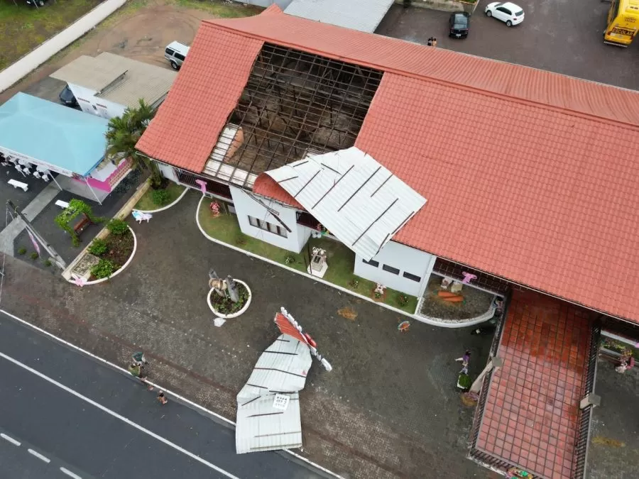 O vendaval ainda causou avarias no prédio da Prefeitura de Rodeio, onde parte do telhado foi danificada.